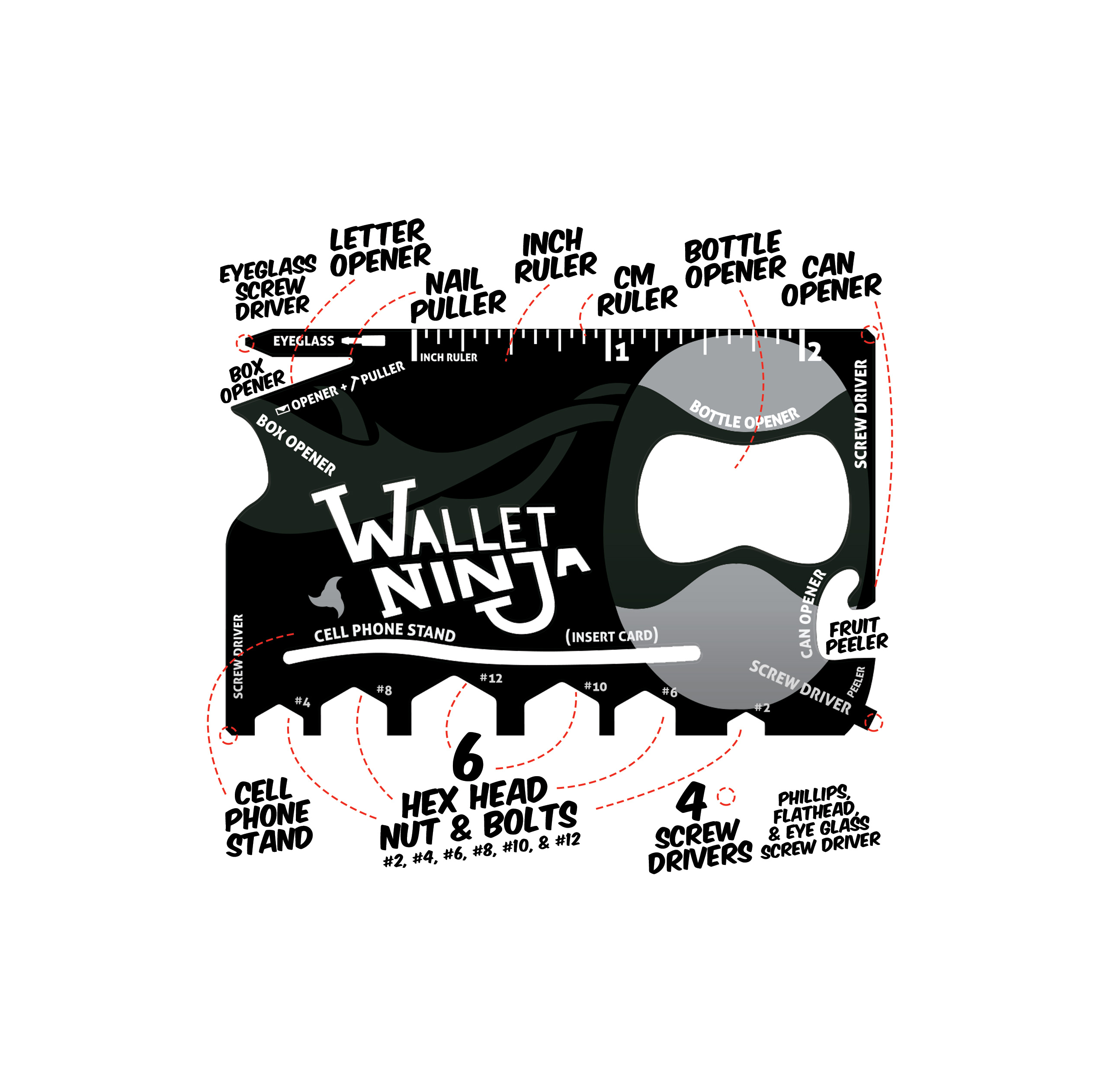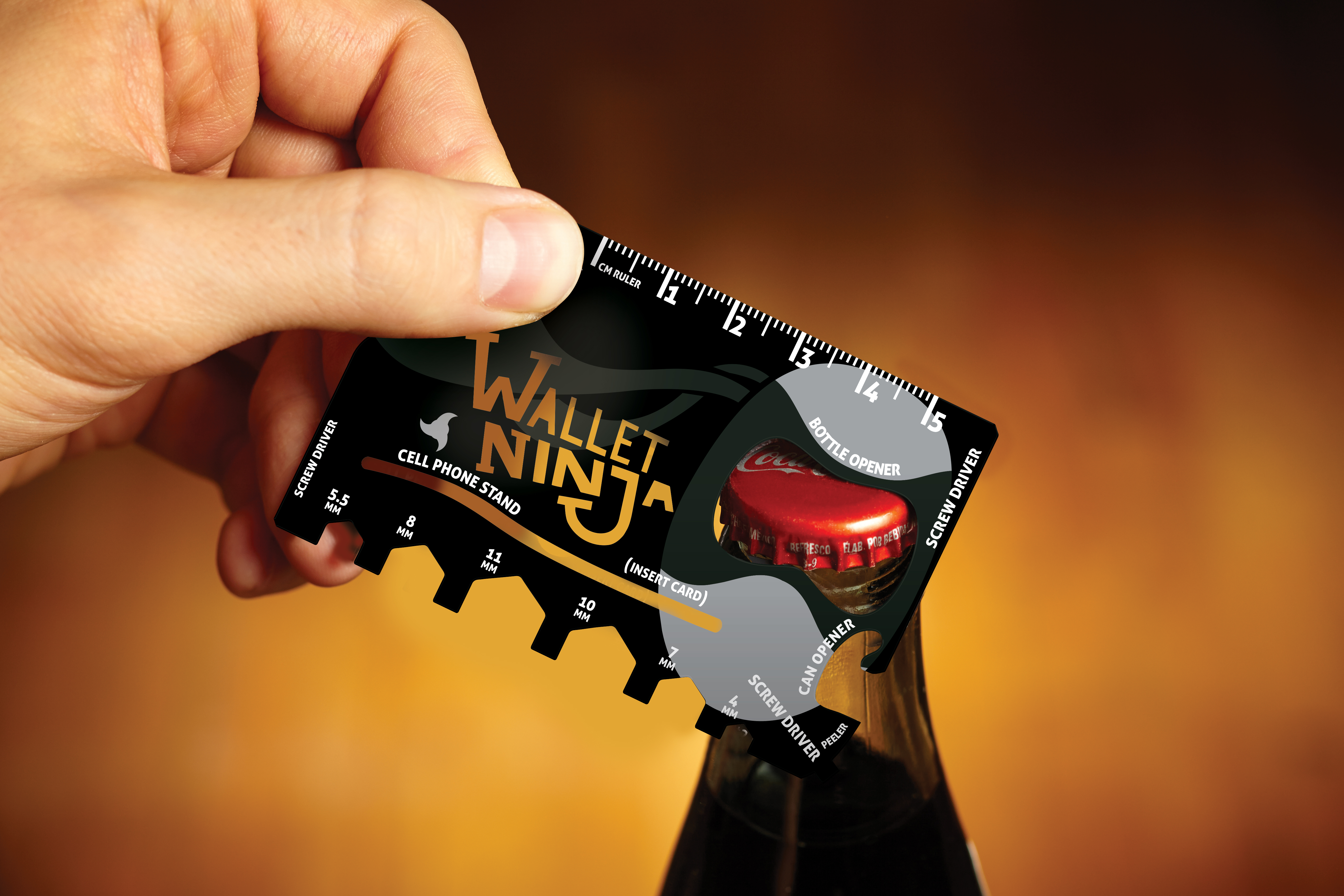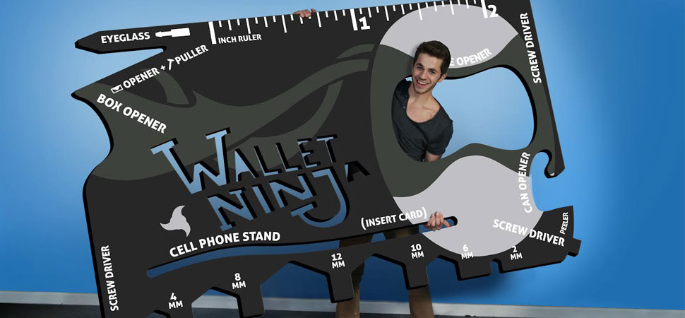 Et af de bedst profilerede produkter er Wallet Ninja, der er et multiværktøj med 18 funktioner. Det er på størrelse med et kreditkort og lavet i hærdet stål. Utroligt nok indeholder det flade stykke metal blandt andet skruetrækkere, mobiltelefonholder, oplukker, lineal og fastnøgler til møtrikker og bolte.