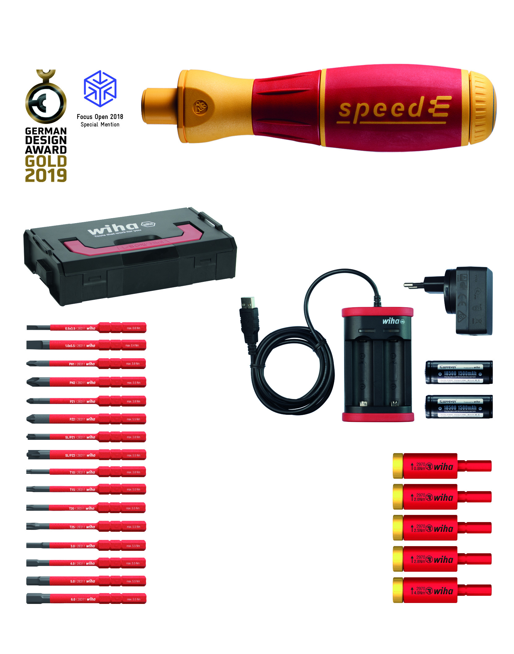 ElectricVario Family, et komplet kombinerbart hold bestående af 83 værktøjer. Det nye ”Wiha-team” omfatter mange nye talenter samt allerede velkendte Wiha-profiler. Elektrikeren skal kunne spille sig igennem ”straffesparksfeltet” og skrue enhver skrue i på en skånsom, effektiv, fleksibel og 100% sikker måde ved at sammensætte deres egen ”holdopstilling” fra hele det ”professionelle team”.