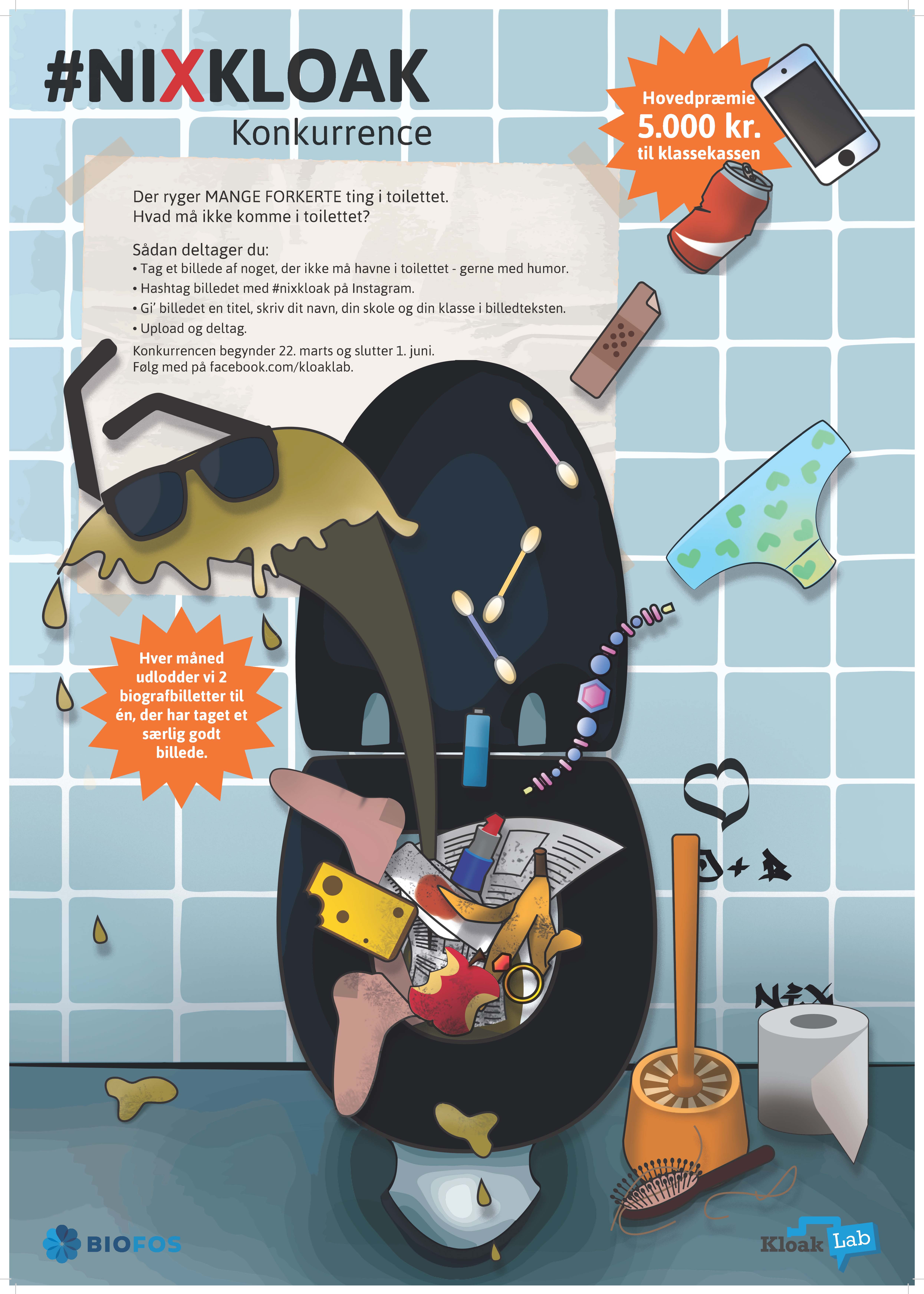 #NIXKLOAK er en konkurrence, hvor vi via de sociale medier opfordrer eleverne til at sende billeder af, hvad vi ikke vil have i afløbet og dermed være med til at dele budskabet med humor og uden løftede pegefingre.