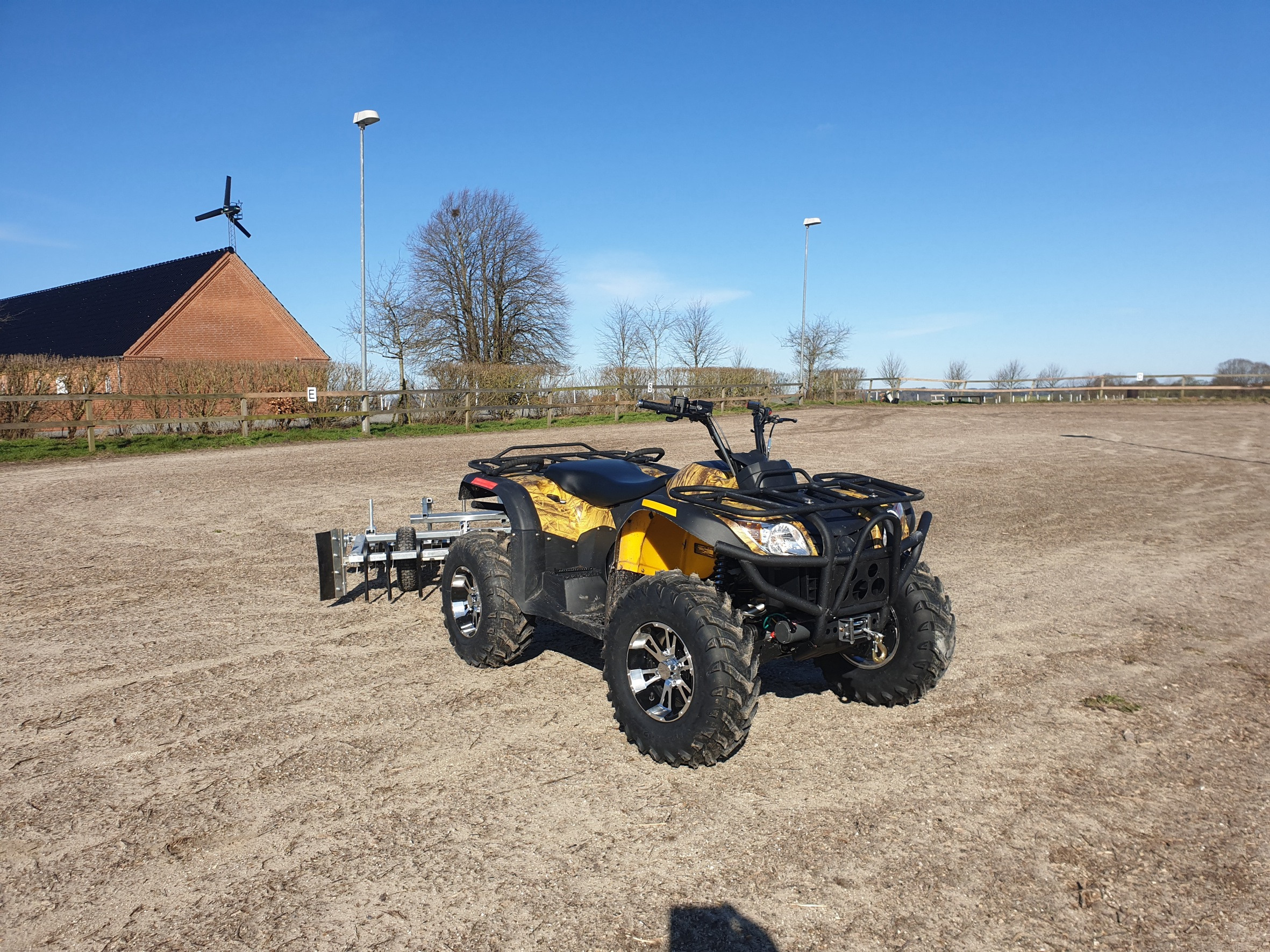 Ved arbejdsopgaver kan den nye ATV trække trailer, rive, planér rive, slagleklipper m.v. – er udstyret med spil – og klarer stigninger på op til 30 grader.