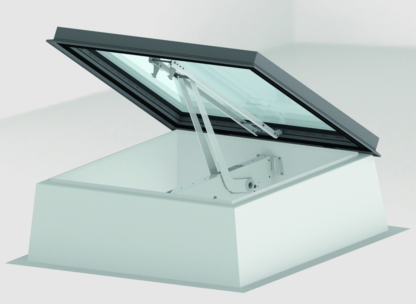 En vigtig fordel ved de nye glasplanlys er den motortype, som nu anvendes i alle ovenlys fra Lamilux og åbner dem op til 160 grader. En motor med kraften til at styre en større glasflade i en stærkere konstruktion med alu- eller plastramme.