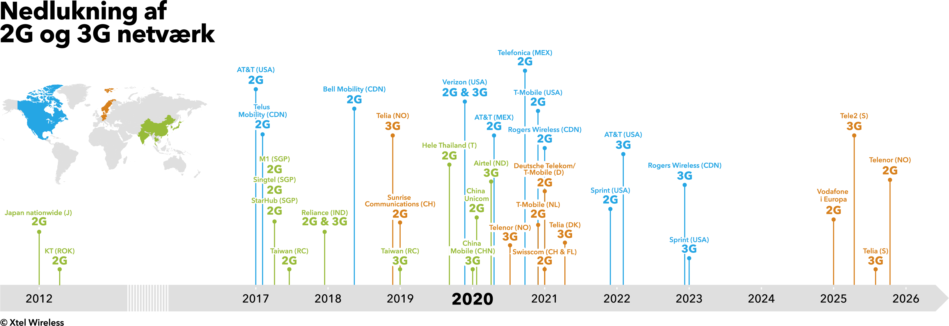 Med introduktion af 5G-netværket er der nu sat dato for, hvornår netværksoperatørerne nedlukker deres 2G- og 3G-netværk i verden. Nedlukningen giver massive udfordringer for de løsninger, der i dag anvender 2G- og 3G-netværk til opsamling af data fra virksomhedernes produkter. Hvad skal man gøre med disse produkter, når infrastrukturen pludselig ikke er der mere?