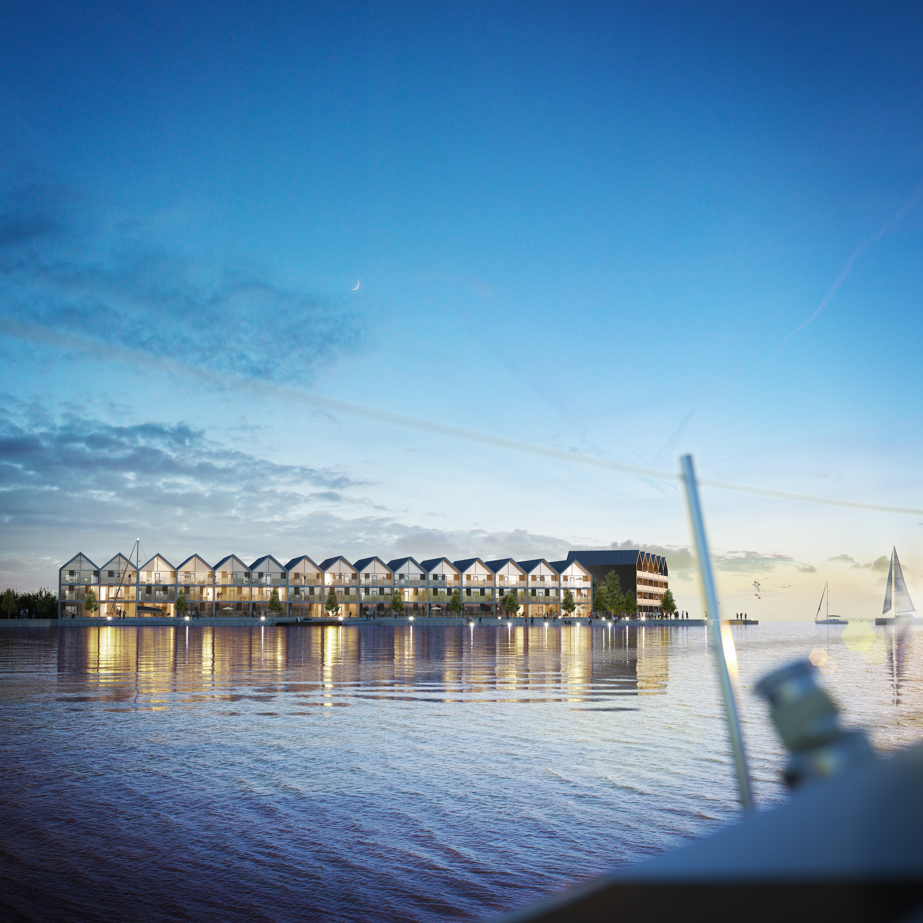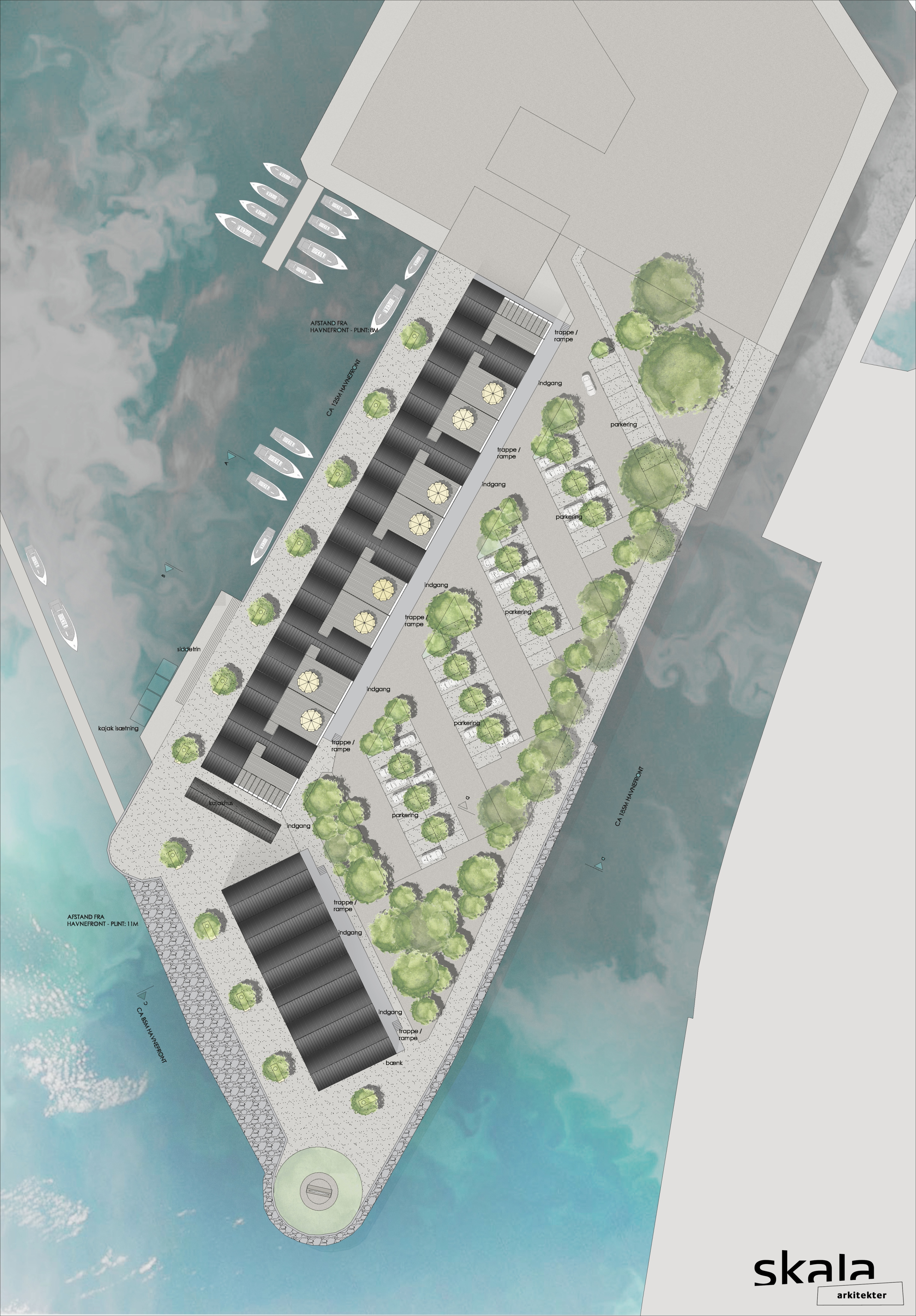 De kommende boliger er tegnet af Skala Arkitekter, der har skabt et byggeri med klare referencer til traditionelle skandinaviske havnehuse, som tidligere blev brugt til opbevaring af sejlbåde og havnemateriel.