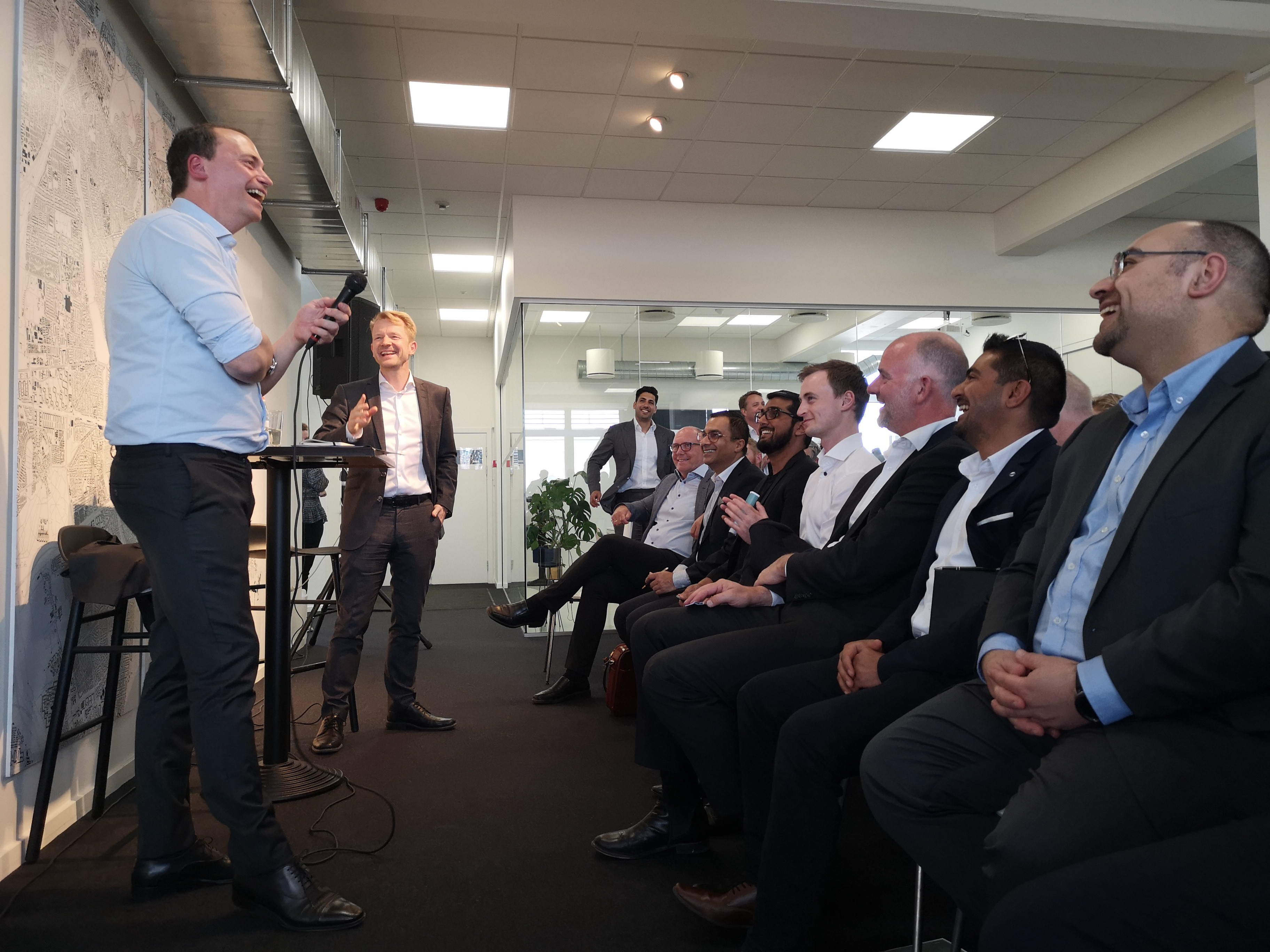 Uddannelses- og forskningsminister Tommy Ahlers (V) var for nylig gæstetaler ved Cobblestone i Valby og netværket PropTech Denmarks dialogmøde om proptech og iværksætteri i ejendomsbranchen. Til højre Rasmus Juul-Nyholm, direktør, Cobblestone.