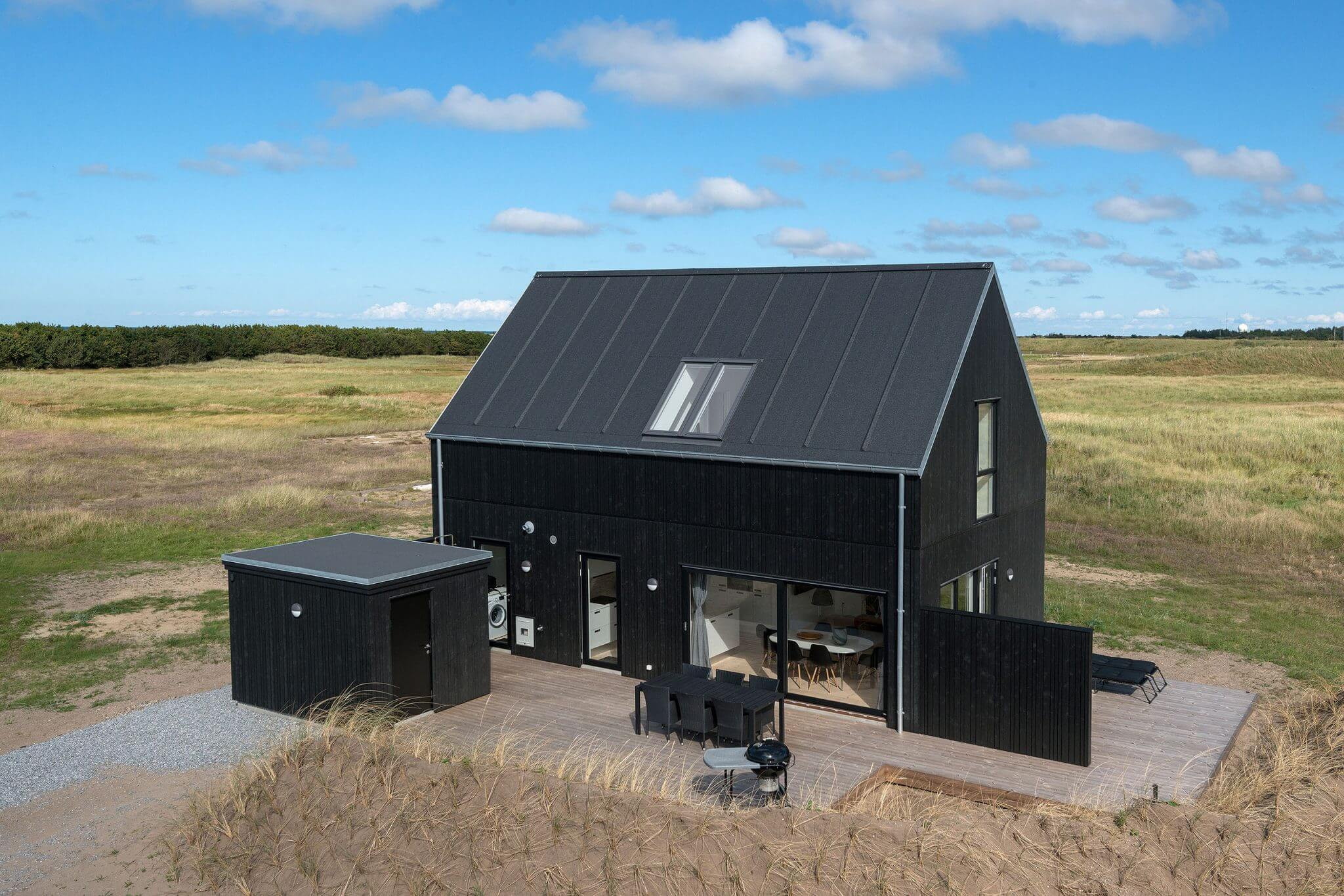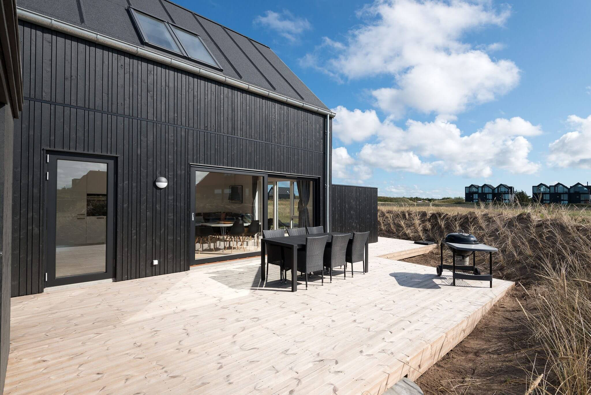 - Alle huse er helt nye og med masser af kvalitet i materialerne og stort set vedligeholdelsesfrie. Men måske vigtigst har vi i designet lagt vægt på, at husene udtrykker enkelhed og tager naturen ind i boligerne. Det har vi gjort med f.eks. store vinduespartier. Husene ligger desuden placeret lige ud til strandklitterne og med udsigt til vandet. Det vil sige, at man træder direkte ud i den rå, nordjyske klitnatur lige ved vandet, tilføjer Jakob Axel Nielsen.