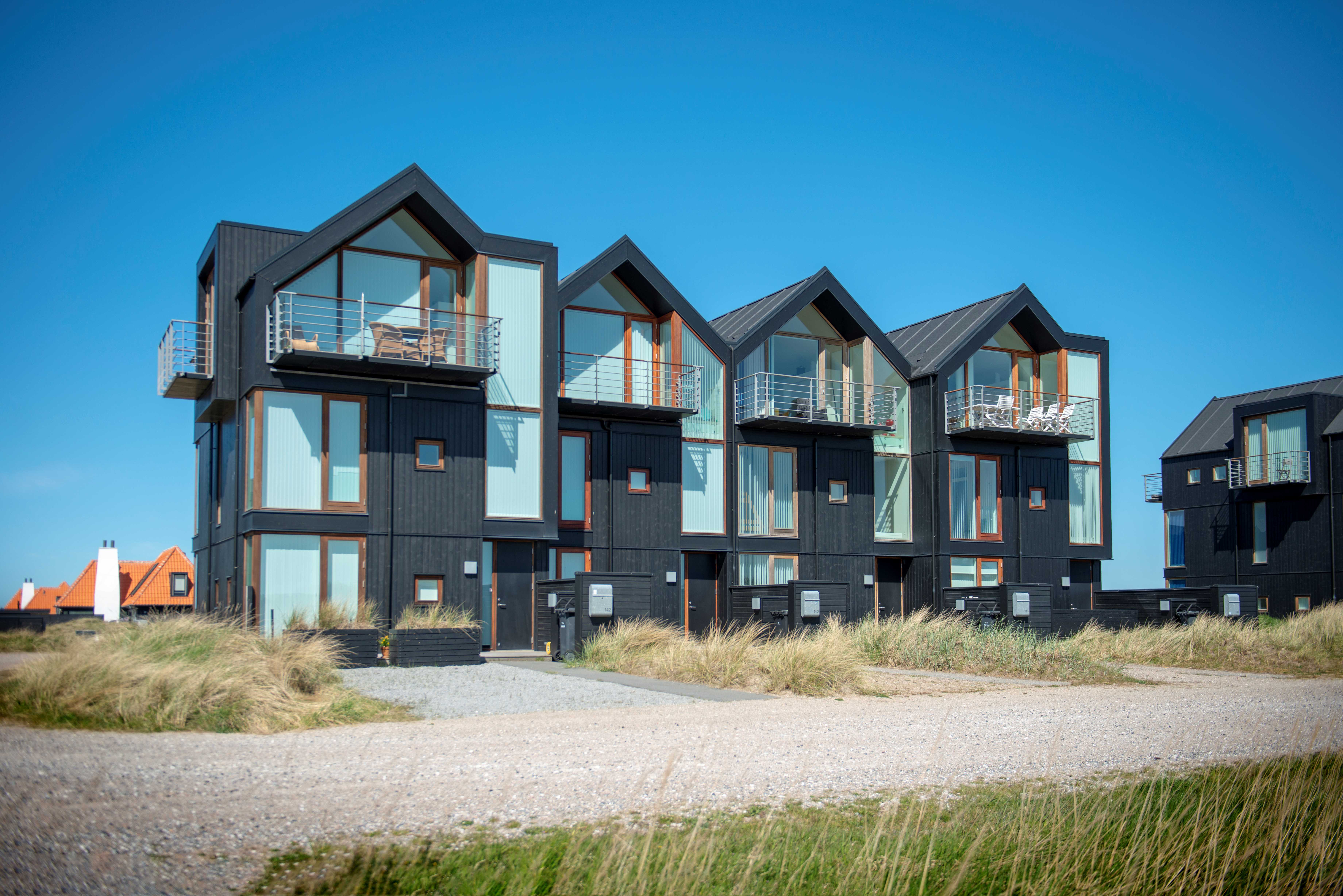 Ikke langt derfra ligger de flotte, rødteglede Kunstnerhuse i tre størrelser. Derudover er der Fiskerhuset, et topmoderne lyst hus på ca. 120 kvm, og de enorme Klitgården, der i indretning slægter de gamle klitgårde på, men er bygget i moderne stil og kvalitet og rummer op til 425 kvm.