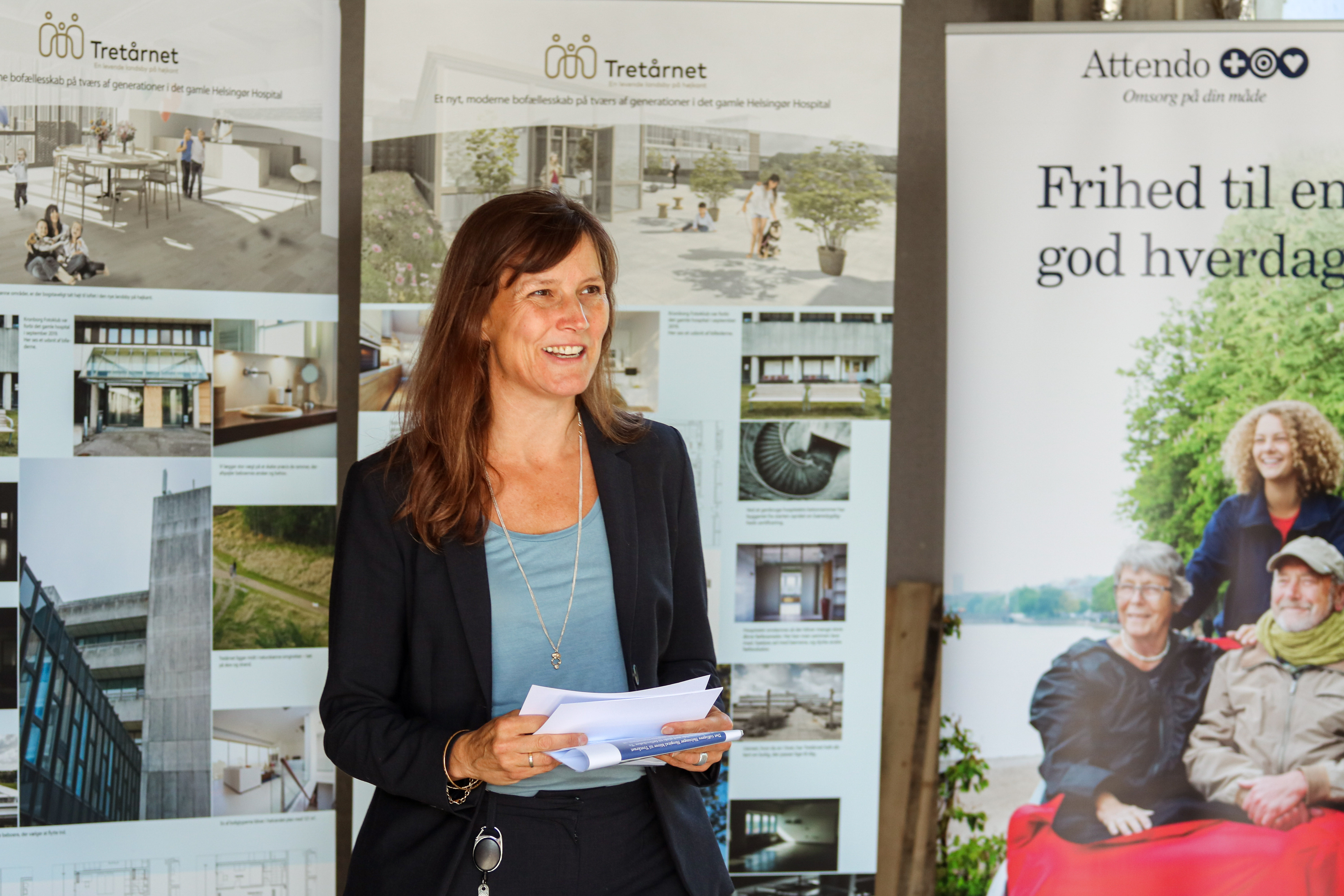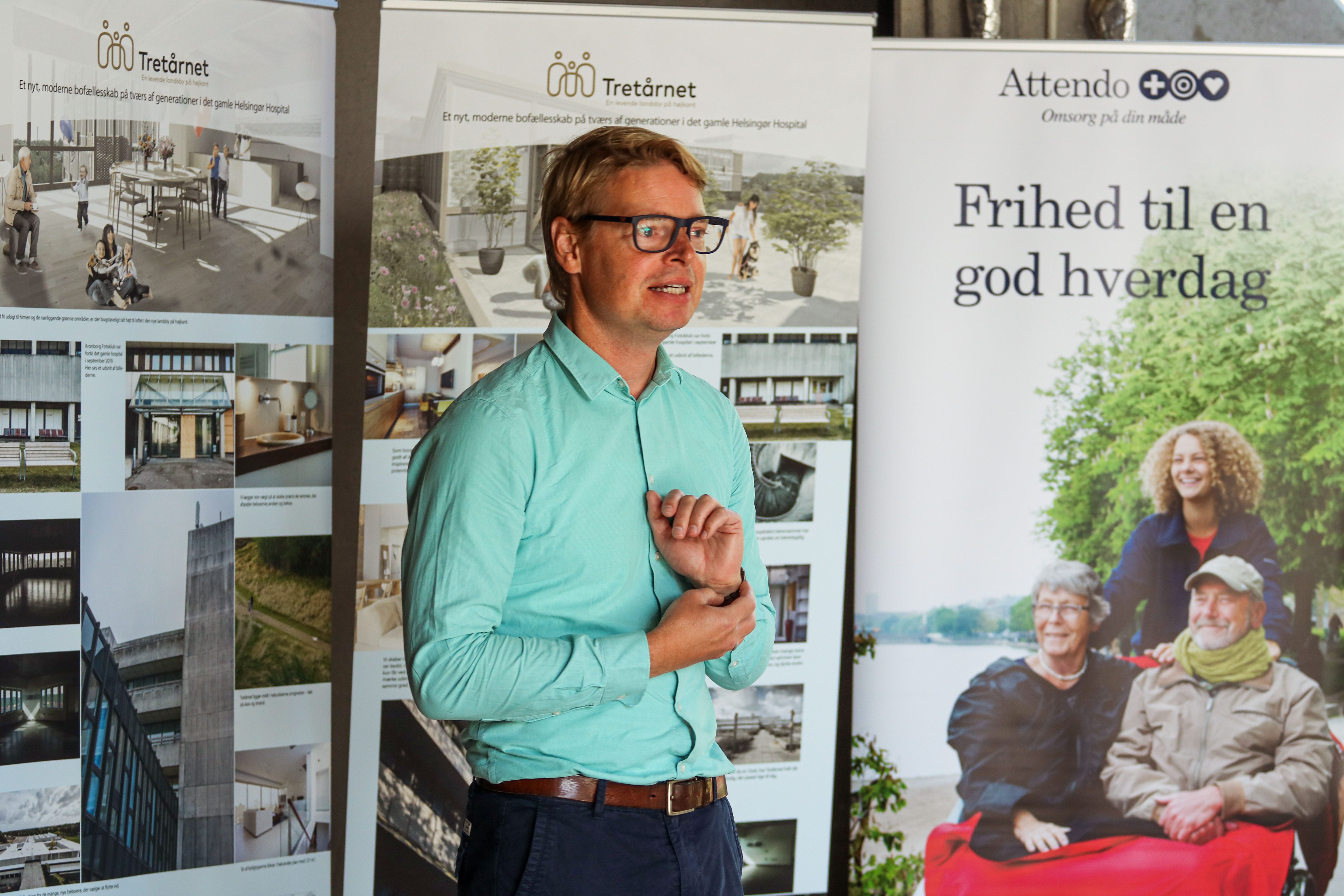 Solen stod højt på himlen, da igangsættelsen af byggeriet af Helsingør Kommunes nye friplejehjem blev markeret i de rå lokaler på det tidligere Helsingør Hospital. Friplejehjemmet, der opføres og skal drives af Attendo, bliver en del af den nye landsby ”Tretårnet”, der bliver en levende by på højkant, som det hedder i arkitekternes oplæg.