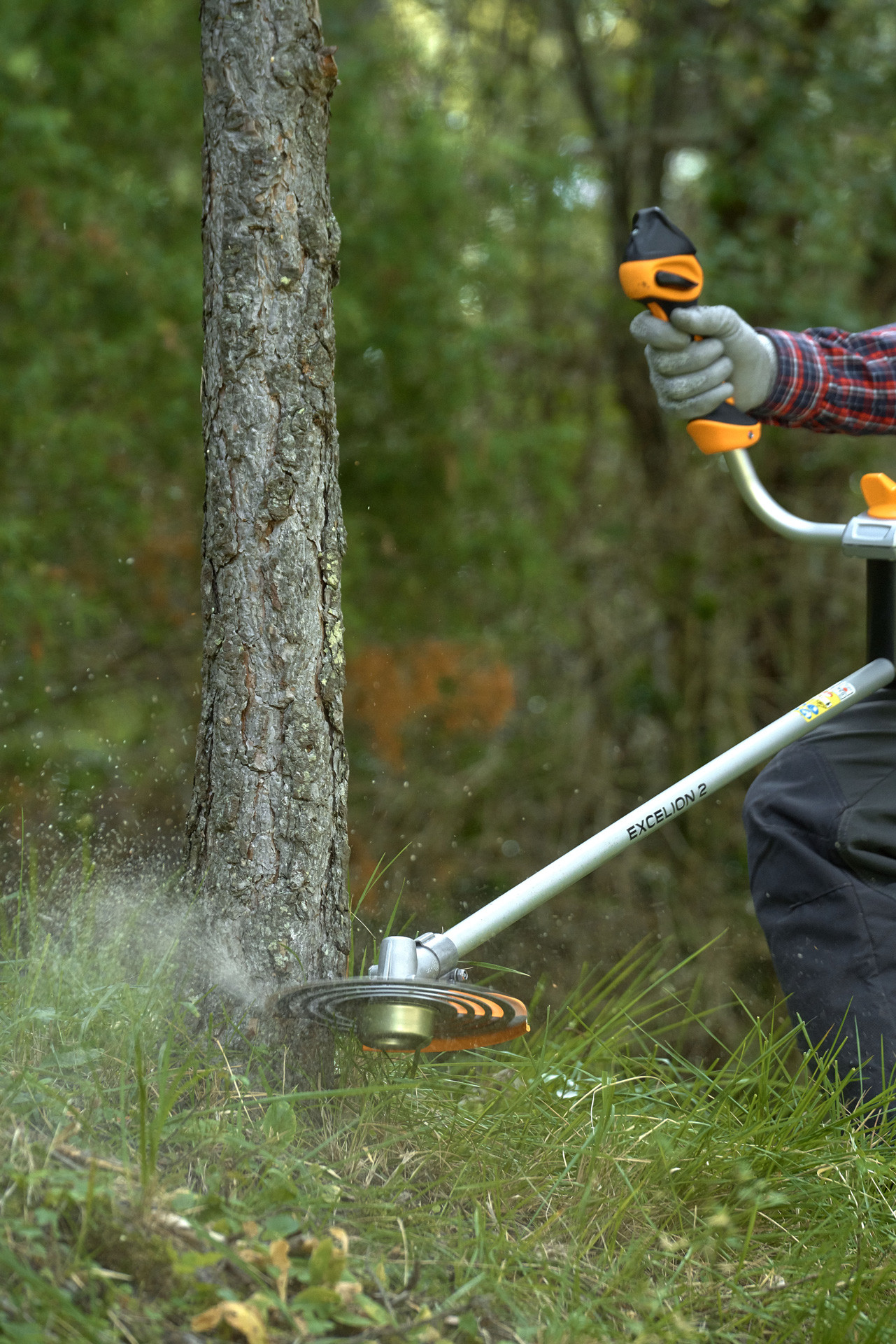Du kan enten få Excelion 2 med v-styr eller d-håndtag – afhængig af temperament og ønsket arbejdsstilling. V-styret giver en behagelig stilling, da du kan montere buskrydderen til en medfølgende sele. Her er der mulighed for at sætte ergonomien i højsædet, da der er et bedre balancepunkt (du arbejder sidelæns) med v-styret. Netop den sidelæns måde at håndtere maskinen på kan være mere behagelig og effektiv, når man arbejder i længere tid ad gangen.