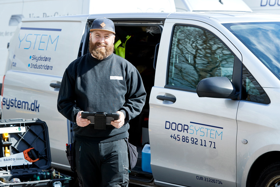Hos Door System fortsætter aktiviteterne inden for serviceområdet med at vokse, og serviceafdelingen bliver en stadig større og vigtigere del af forretningen. Aktiviteterne omfatter både montage af nye døre og porte samt service på eksisterende dørløsninger. Og vi varetager ikke kun service og montage af egne døre. Der er også selvstændige serviceopgaver på produkter og mærker fra andre leverandører.