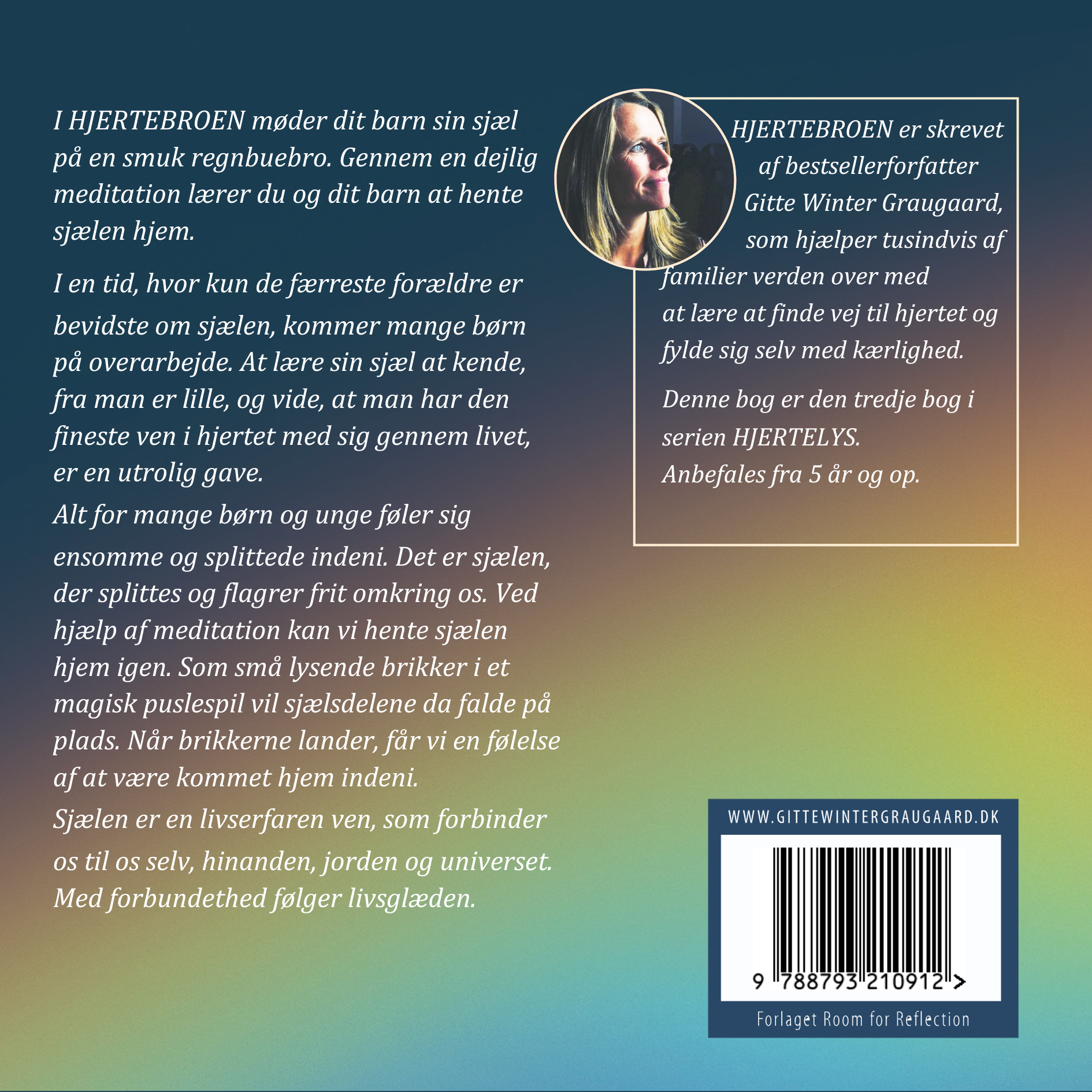 Hjertebroen er Gitte Winter Graugaards 8. bog til børn (www.hjertebroen.dk). Ud over at bøgerne hjælper børn til bedre søvn, hjælper de også med at skabe nærvær, tryghed og kærlighed i familierne. I 2019 holdt Gitte en stærk TEDx tale om børn, søvn og kærlighed (www.gittewintergraugaard.dk/tedx). Hjertebroen – lær dit barn at føle sig forbundet udkommer officielt d. d. 6.12. 2023 på Forlaget Room for Reflection og sendes allerede fra i dag ud til de mange forældre, der allerede har forudbestilt bogen. Bogen kan fremsendes på PDF ved at skrive til hello@gittewintergraugaard.dk. Skriv også, hvis I ønsker en fysisk kopi. Kontakt: 60731511.