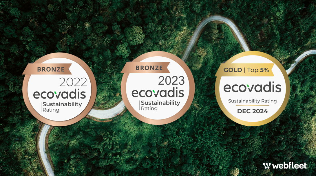 EcoVadis är en global organisation som utvärderar företags hållbarhet och CSR (Corporate Social Responsibility). Med guldstatus från EcoVadis tillhör Webfleet nu de fem procent bästa av de nästan 150 000 företag som EcoVadis bedömer världen över varje år ur ett hållbarhetsperspektiv.