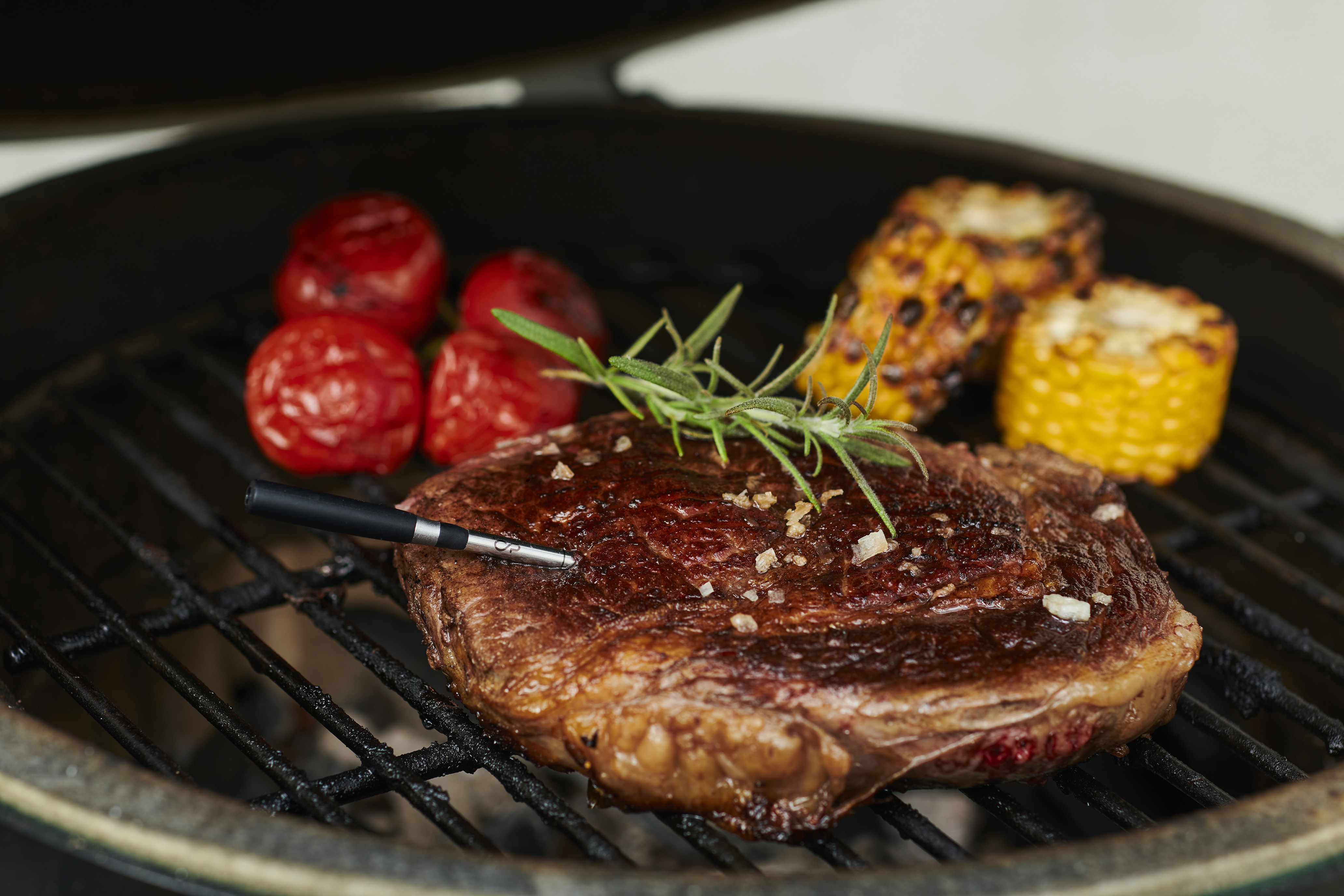 • Sensorene i kjøttnålen måler det varmeste punktet i kjøttet og det «kaldeste» punktet. Dermed kan kjøttnålen fortelle nøyaktig når maten vil være ferdig. Den sjette sensoren sitter i håndtaket og måler lufttemperaturen.