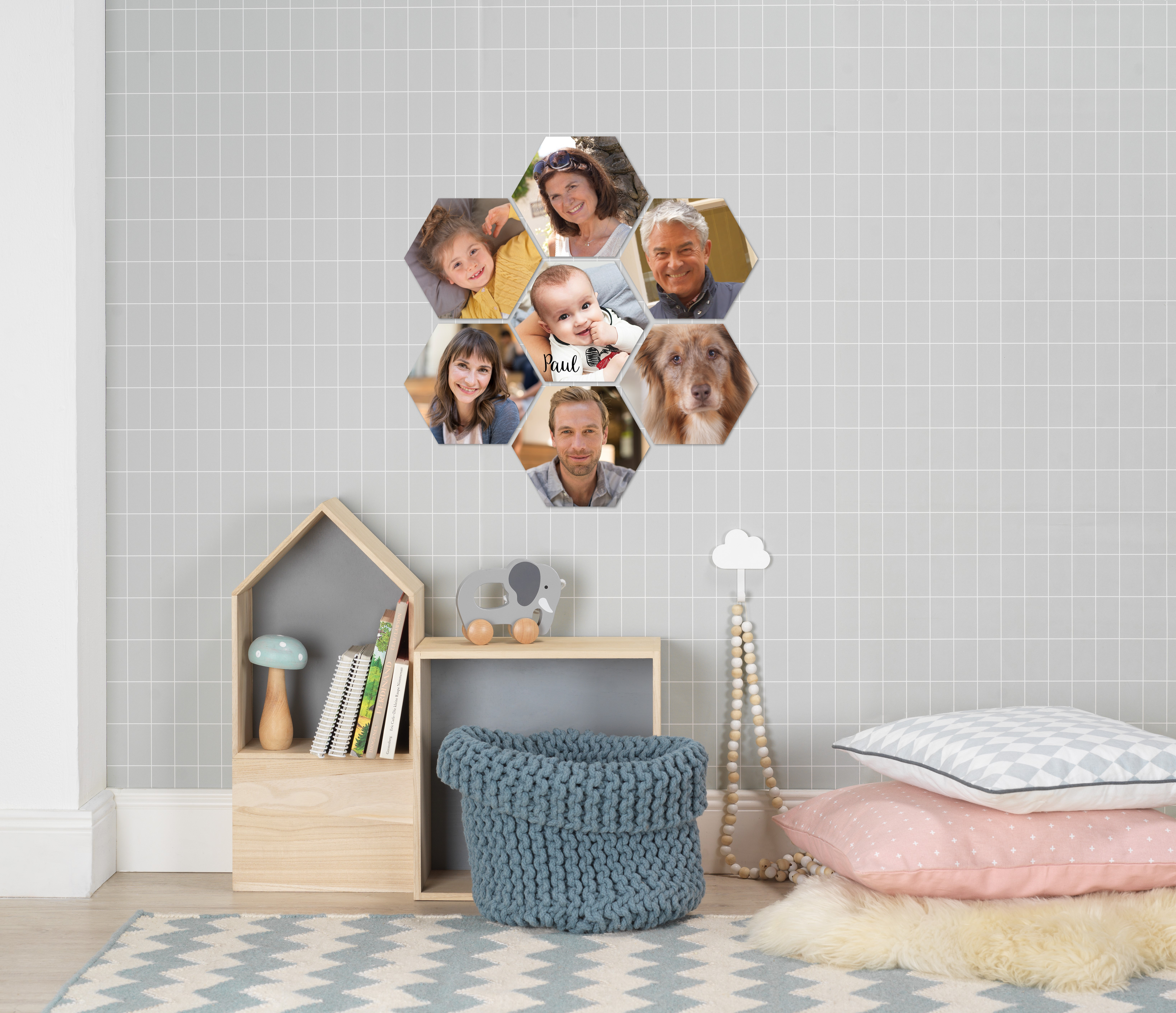 De nya, sexkantiga hexxas från kategorin CEWE VÄGGBILDER ger dig möjlighet att skapa ett otal former på dina väggar: Du kan t.ex. sätta upp dem i ett hjärta, som trekanter, bokstäver eller något helt annat. Du väljer också själv om du vill göra ett collage eller skapa en vacker effekt genom att dela upp ett foto i flera sexkantiga delar. Dina landskaps- eller makrofoton är t.ex. perfekta att hänga upp som ett flerdelat foto, eftersom de skapar en fönsterliknande effekt på din vägg. Dina bästa foton från resor och vackra porträtt kan du samla till ett modernt collage, som garanterat kommer ge ett leende på läpparna och väcka många minnen till liv varje gång du tittar på väggen. Det praktiska magnetupphänget gör det inte bara enkelt att hänga upp dina hexagoner utan att borra i väggen: Du kan också snabbt flytta runt på dina hexxas och bygga ut med fler hexagoner när du har lust.