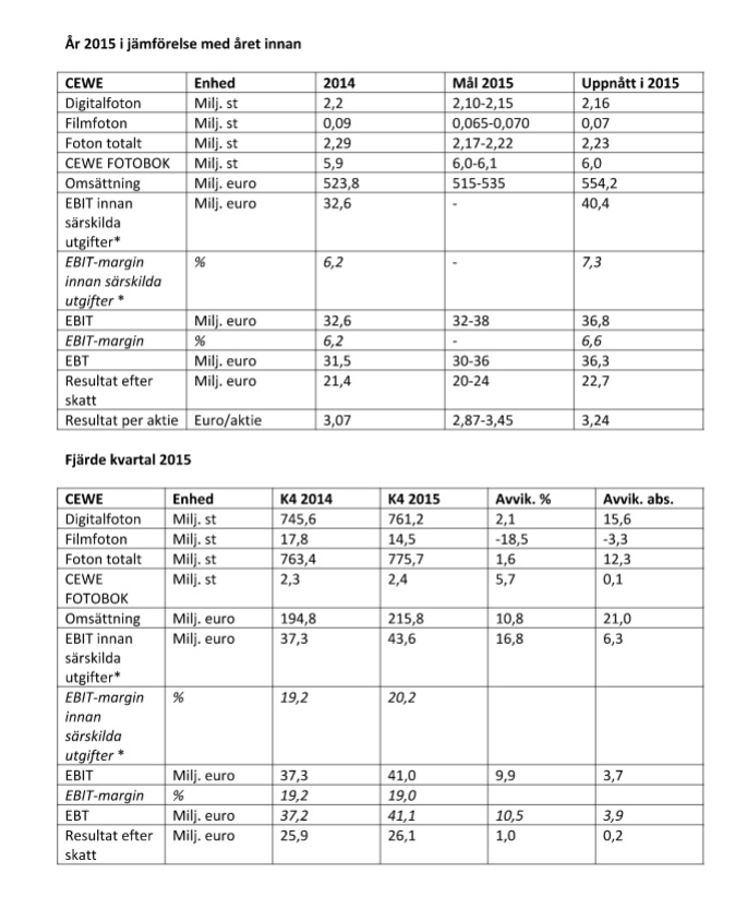 CEWE presenterar den fullständiga årsuppgörelsen på press- och analyskonferensen den 23 mars 2016 i Frankfurt.