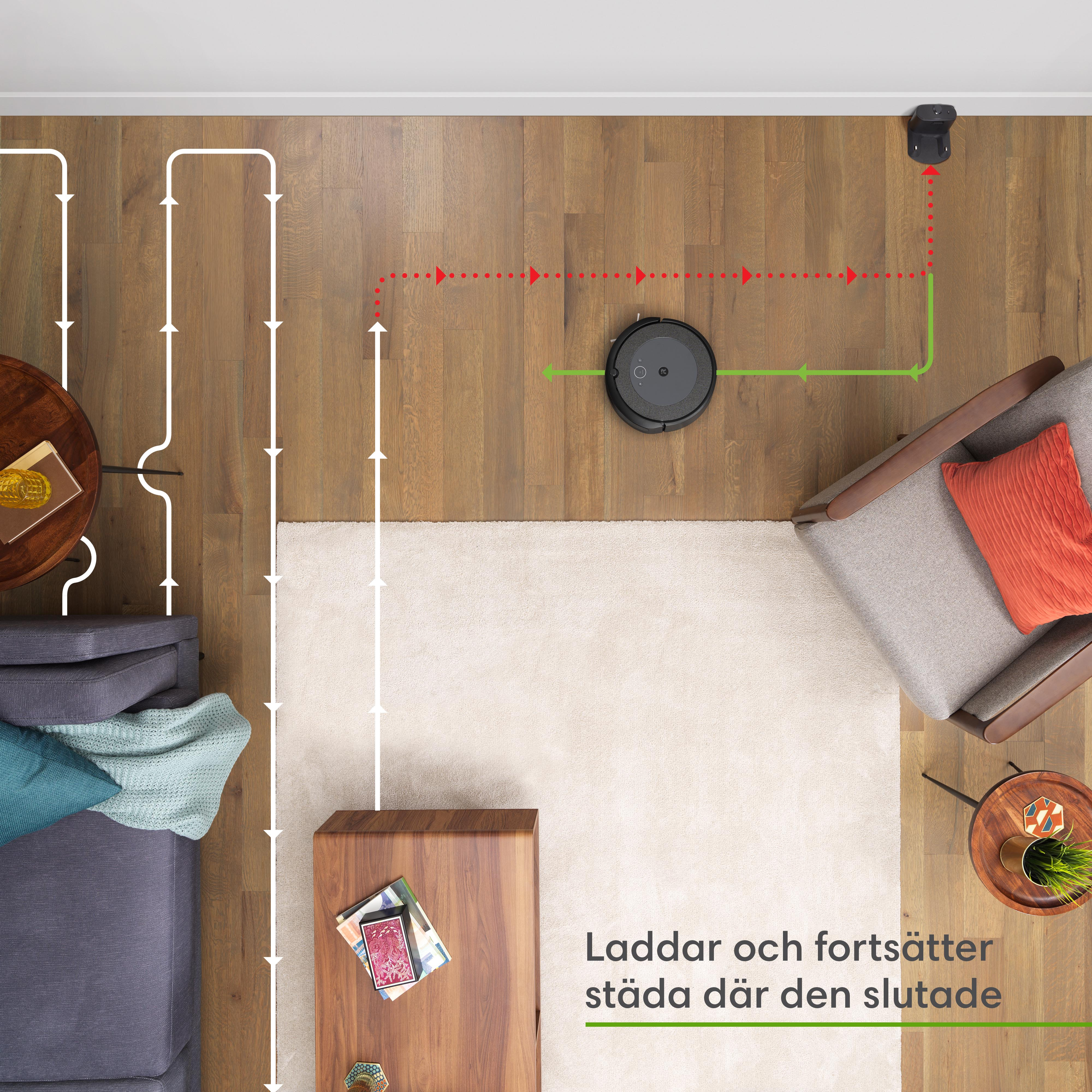 Så snart du har installerat Roomba i3 i ditt hem får du enkel städning anpassad efter dina behov. Du behöver inte vara tekniskt intresserad eller göra en massa inställningar i appen – iRobot Roomba i3 tar hand om städningen åt dig. Efter avslutad dammsugning skapar den en karta över ditt hem, så att du själv kan se exakt hur noggrann den har varit.