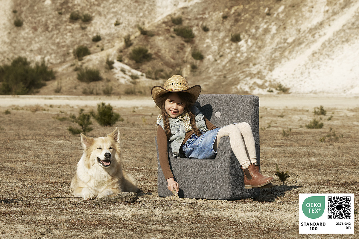 När barn leker, busar och vilar på by KlipKlaps populära möbler så är det med både komfort och säkerhet i fokus. Alla stoppade möbler* från det danska designmärket är nämligen certifierade enligt OEKO-TEX® STANDARD 100, Product Class 1 – den strängaste kategorin för textilier för bebisar och små barn.