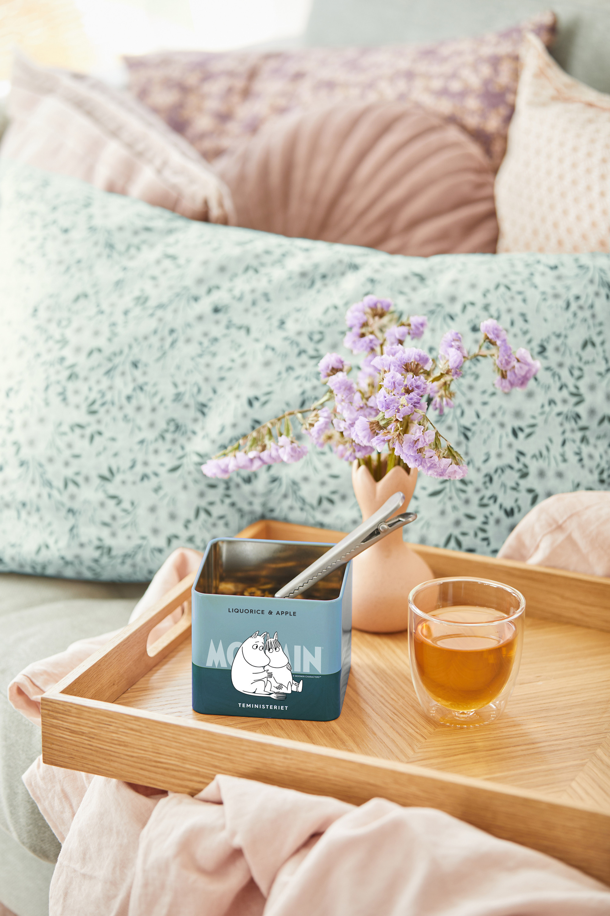 Den andra nyheten, MOOMIN LIQUORICE & APPLE, är ett förtjusande tillskott till Moomin-kollektionen och visar Snorkfröken och Moomin tillsammans i en romantisk och charmerande illustration. Med sin fruktiga smak och vänliga design passar teet perfekt för dagligt bruk och som en del av samlingen.